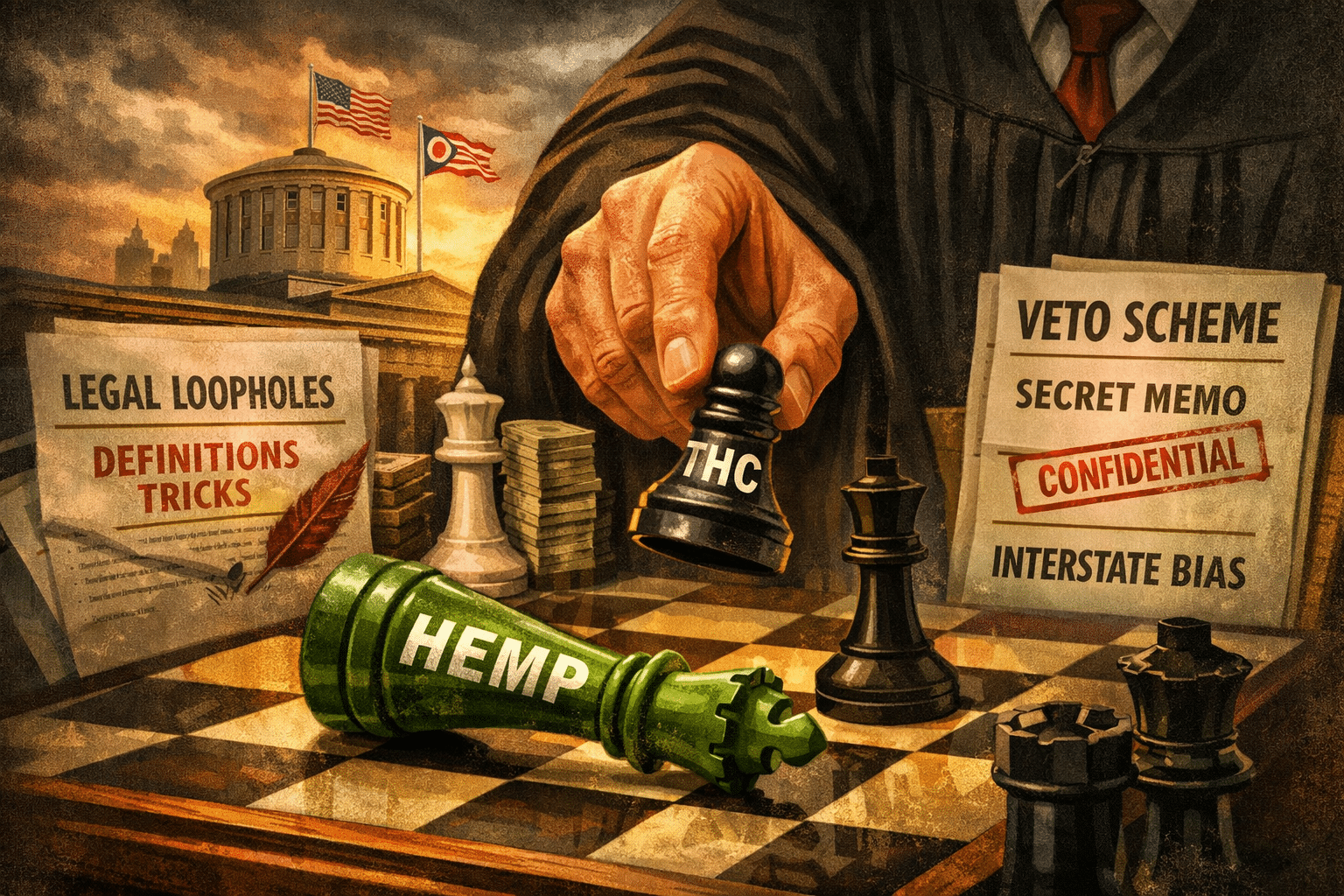 A new lawsuit alleges Ohio used definitional trickery, interstate discrimination, and possibly an invalid veto process to hand a lawful hemp market to in-state marijuana licensees.
